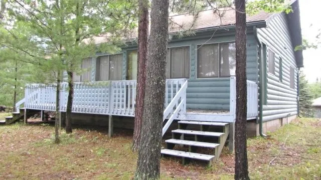 MLX 881433. MINONG FLOWAGE. 115 ft western exposure sandy swimming shoreline and .49 acre lot on this popular full recreational lake known for great fishing and boating; over 1,500 acres of water to explore. Moderate elevation with sturdy steps to dock. Semi private! Tall white and red pines! Original owners built in 1987, comfortable well cared for and loved for almost 30 years; squeaky clean. The 2BR-1BA cabin is log exterior and knotty pine interior walls and ceilings, carpet floors. Open floor plan, free standing wood burning stove in the dining area. Electric BB heating, private well and septic. Enjoy sitting and relaxing in the attached screen porch or on the front deck with a clear view of the water. Detached matching log 2-car garage. $185,000