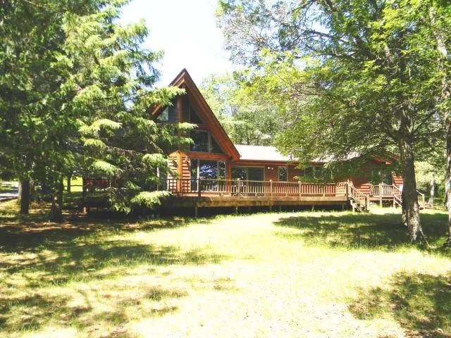 872407/48870 MINONG FLOWAGE. Plenty of room to enjoy both outside and inside. 230' of sandy swimming area and 3.9 acres of land. All your living on one level. Large home with open living and bar area, Kitchen and dining with snack bar, and rec room all done in pine, wood stove area, and a loft. Total of three bedrooms...one overlooking the living area. Wood floors shine throughout. Many windows to the lakeside. 30 x 40 pole building. Boat house at the water's edge. This one has room for all to enjoy lake living. $424,900.