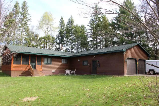 4 season 3 bedroom 1 bath with large walk-in tiled shower lake home with 2 stall attached garage comes with 2.5 wooded acres and 170' of low sandy westerly lake frontage on this 49 acre 31 ft deep lake. Pear lake is known for its fishing. Watch the beautiful sunset, loons, Eagles and wildlife from the large screen porch. Open floor plan features wood burning fireplace. $183,000