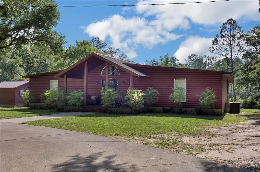 Welcome to Your Dream Countryside Retreat! Nestled on 2.76 acres of lush, green countryside, this absolutely stunning custom-built home (constructed in 2006) beautifully blends the rustic charm of a log cabin style with all the comforts of modern living. From the moment you enter, you ll be captivated by the vaulted ceilings, warm pine finishes, and the natural light that flows through every corner. The open-concept living and dining area is centered around a striking two-sided gas log fireplace, adorned with a floor-to-ceiling stone and pine facade offering both warmth and an eye-catching focal point. This home features three oversized bedrooms, each with generous closet space. The primary suite is a true retreat, complete with French doors that open onto the back deck and a spa-like en suite bathroom featuring a soaking tub and separate walk-in shower. The kitchen is a standout lined with stained wood cabinets and rich wood countertops across three walls. It includes all existing appliances in excellent condition and provides ample space for culinary creativity. Adjacent to the kitchen is a spacious utility room and a walk-in pantry the size of a small bedroom, ensuring storage will never be a concern. Step outside and the charm continues. The covered back deck spans the entire width of the home, complete with ceiling fans to create the perfect spot for morning coffee or evening relaxation. But the real showstopper? This property overlooks Red Creek and features a partially covered 40' x 40' deck perched above the water, creating a serene space for entertaining, lounging, or taking in nature s beauty. Just below, you ll find a sandy beach area, ideal for swimming, picnics, or family fun. Details: Water Heater - Electric - 40 Gallon - 11/23, Over Range Microwave - 7/23, Refrigerator - Double Door Freezer on Bottom 6/24, Dishwasher - 4/25, Stove - Electric - 2019, Ceiling Fans - Living Room & Deck 2023, Gas Log Fireplace, New felt and screws replaced on metal roof 3/23, water well on property is non-functional, new bulkhead - felt, treated lumber, soil, and slag rock. Make an appointment today to view this gorgeous home.