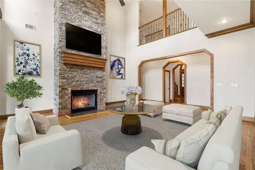 This stunning 5,500 sq. ft. luxury home, situated on over an acre across from Springdale Country Club, offers comfort and elegance. Highly sought after location just a short walk down the hill to Lake Fayetteville and the Greenway trail, and just minutes from I-49, this property combines luxury living with convenience. This home features many upgrades such as a spacious master suite with a steam shower and a large walk-in closet, a large office, 3-car garage, many built-in's throughout the home, a separate in-law suite with a kitchenette upstairs and tons of storage.