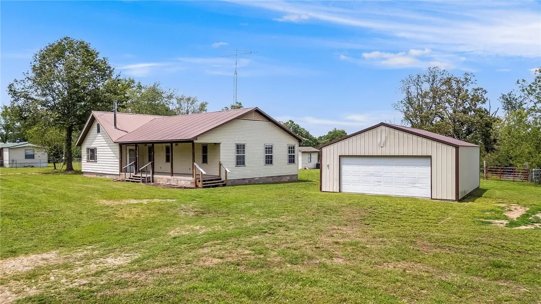 Do you want to be in the country but close to town? This charming home with 2.6-/+ flat acres is the perfect property for you. Freshly painted, 3 bedrooms, 2.5 bathrooms, and 2 flex rooms that could be used for office or craft room. The primary bedroom is spacious and has a patio door to the back yard. You will love the walk-in tub to relax in and walk in closet with built in chests. The kitchen is spacious with a moveable island and the dining area is big enough for a large dining table and has lots of windows for your plants. You will enjoy the large covered deck that is great for entertaining. The men will love the small building with electricity and a large shop/garage. You can stay warm with central heat, wood burning stove, and gas fireplace. The acreage is beautiful and very usable for livestock and garden areas. There have been as many as 4 horses on the property. The well water is very good and it has a water softener system that is serviced every year. Only 10 minutes to Harps in Tontitown.