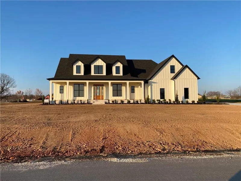 Luxury and Location! Stunning new construction home right near the new by-pass exit on 412! Sitting on 1.36 acres in Tontitown, this beautiful property offers 5 bedrooms plus a sophisticated office, 4.5 baths, and 3,784 sq ft of thoughtfully designed living space! This corner-lot home features an open layout with a vaulted living room ceiling accented by poplar beams, an elegant 18’ foyer, and wood and tile flooring. The gourmet kitchen includes 10’ full-height custom cabinets, a natural gas range, large island, and a GENEROUS butler’s pantry with an extra sink and fridge space, in addition to more cabinets and shelves. The primary suite offers a large soaking tub, tile shower, his/her vanities, and a large walk-in closet with added storage that is connected to the spacious laundry. Upstairs provides a bonus room with it’s own full bath and large closet! Covered front and back porches make taking in the beautiful surroundings a breeze. Come see where convenience and luxury living meet!