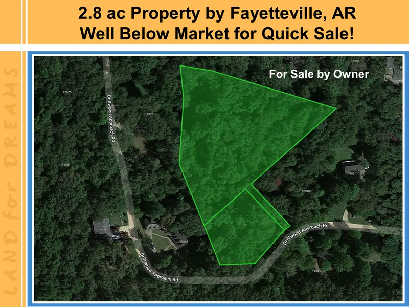Fayetteville, Arkansas is a place anyone would be happy to call home. Voted as one of the "Top Ten Places to Live in the US" for 2021. This UNRESTRICTED property is settled in a waterfront community, 16 miles from Fayetteville. It sits just 1/2 mile off White River just 29 miles from beautiful Beaver Lake, which boasts endless fun activities for the whole family. It is also just 36 miles outside the Ozark National Forest. Enjoy camping, hiking, sightseeing, and more. Fort Smith is only an hour and a half drive away, close enough for an exciting weekend getaway! Springdale Country Club, only 17 miles away, and the Sassafras Springs Vineyard & Winery, 11 miles away are just two examples of the great, local amenities. There is also a wide range of terrific local schools to choose from. Don't miss out on the opportunity to live in this charming town in the great state of Arkansas with NO HOA fees. This incredible 2.8 acre property would make the perfect building lots for at least TWO homes. Buy both lots for your own or sell one! We offer this property for only $29,500 CASH. That saves $42,100!