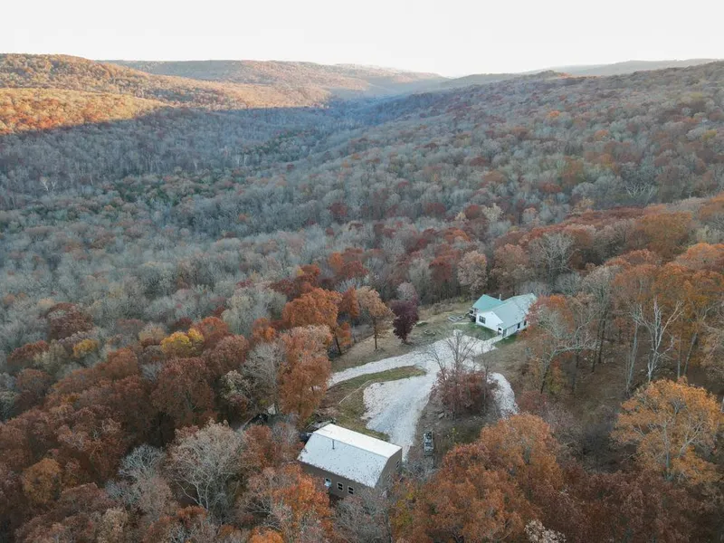 This beautiful home on 38 +/- acres has it all! This secluded property offers peace and quiet just 15 minutes from the interstate and 25 minutes to downtown Fayetteville. As you pull down the private drive, you will be amazed by the view overlooking the surrounding mountains and Lee Creek below. This 1,500 square foot home was built just 3 years ago and still has that new home feel. It consists of 2 beds and 1 bath with his and her sinks, a utility room upon entry, and a large living and kitchen area where entertaining will not be an issue. Did I mention the back deck? On the deck, you will have 180 degree views that will leave you speechless. This home's water supply comes from a water collection system that has 10,000 gallons of water storage. The water runs through 2 filters that have UV light filtration as well. Across the driveway from the house sits a 30'x40' insulated metal shop w...