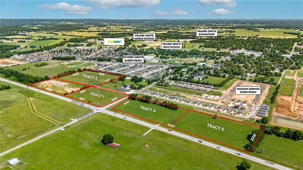 Commercial lots ready for development along Hwy 62 in Prairie Grove. Property suits many uses and can be subdivided as needed. This is an opportunity to be centrally located in a town experiencing immense commercial and residential growth.