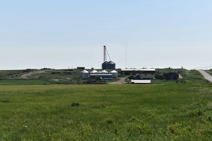 There is a large quonset, a calving barn, corrals with working chute, a tub and loadout, a nice feeding pen with fence line bunks, 355,000 bu. grain storage and leg, large insulated shop and numerous other support buildings.