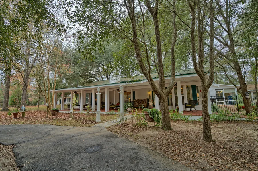 Take a turn down a winding road and discover the epitome of peaceful, country living! Located on over 19 acres, you will first notice the HUGE, stunning veranda that welcomes you inside this incredible, contemporary home. An open-concept living area, with a very spacious, functional kitchen makes this the perfect home for entertaining! Pass thru the formal dining area to find an en suite bedroom, perfect for guests. The master suite is an incredible 900 square feet complete with a sitting area, fireplace, huge walk-in closet and large bathroom. Steps away (and not included in the square footage) is a charming guest house complete with a bathroom and kitchen area. Further out on the property there is a 400 square foot building, currently being used as a professional office. This wonderful country estate is a nature sanctuary with cypress ponds and awesome wildlife. It is located outside o...