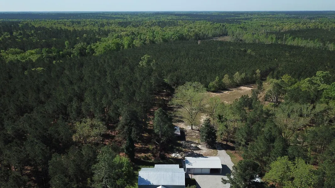 123-acres of different stages of managed pines & hardwood mix, several large fields, a big creek, and a natural spring