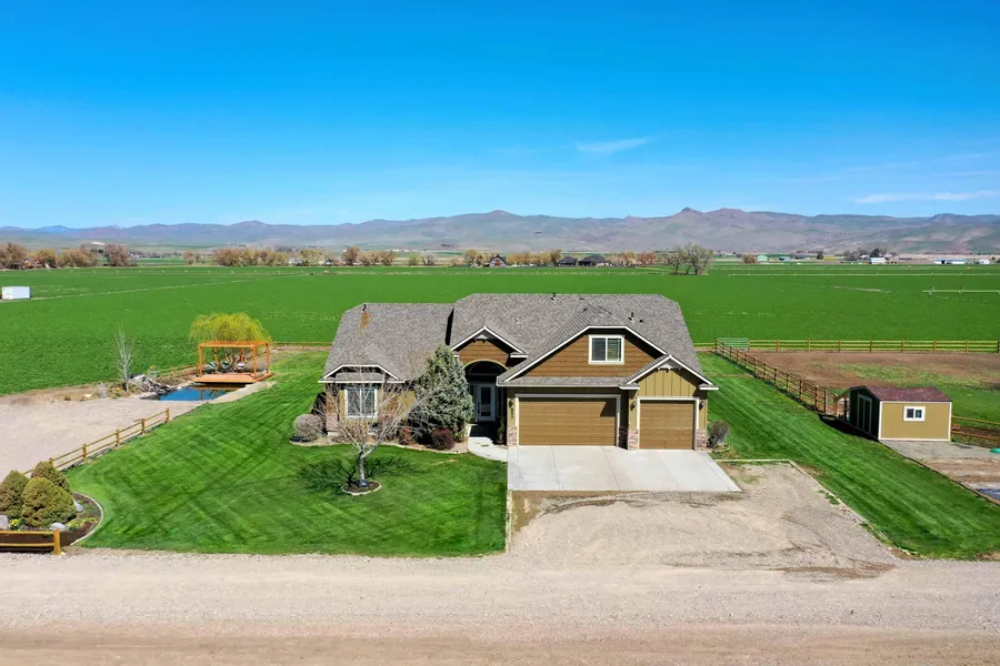 Rarely do you find everything you could want in one property! A beautiful home, irrigated farm ground, an 18x36 in-ground pool, 6000 gal koi pond, 36 x 48 insulated shop, fenced pasture, chicken coop, & not to mention VIEWS for days! The grandeur of the home is apparent as you enter the home with vaulted ceilings, an open floor plan & windows that take advantage of the surrounding views. The oversized kitchen has ample cupboard space, granite countertops, newer appliances & opens nicely into the casual & formal living spaces and den. The main floor offers a nice split bedroom plan with an oversized master suite featuring an amazing walk-in tile shower, dual vanity, sunken tub, and oversized walkin closet. Upstairs you will find the bonus/game room w/ wet bar, sink & fridge as well as a separate guest suite w/ private bath. Movein ready -all new paint inside & out as well as all new carpet throughout the home. The shop features a wood stove, evap cooler, storage room, 220 Vlt power, compressor, & man cave. Adjacent 15 irrigated acres with building right available for sale with a different seller; please ask listing agent for more information.