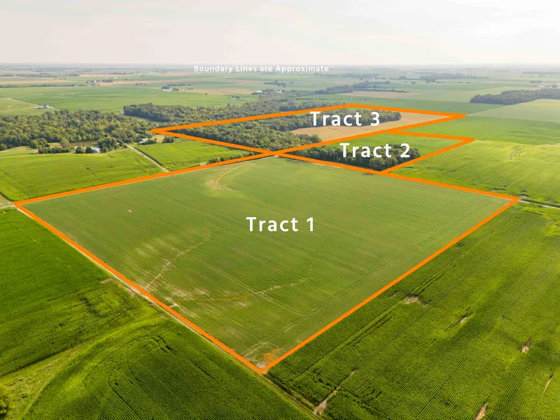 Tract 1: 40.4 flat to gently rolling surveyed acres located on Stone Church Road. This tract of land is nearly 100% tillable and has a productivity index of 105.