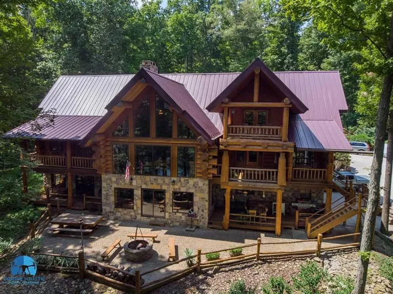 Near Salem, IN nestled in the heart of a beautiful 91 acre property lies the Legacy Lodge. This 8350 Sq. Ft. house built in 2008, a custom built log home shipped in from British Columbia, stands impressive over the mature timber, abundance of wildlife, and the 11 acre lake you can see from just about every vantage point in the Lodge. Legacy Lodge graciously offers 3.5 baths and 4 bedrooms, with two more room easily converted to make 6 bedrooms! Every bedroom has its own outdoor balcony to soak up the natural surroundings. The main floor boasts a spacious open kitchen, dining area over looking the lake, a great room showcasing a commanding natural fireplace, and a one of a kind master suite with a must see master bath offering double vanities, separate large tub, walk in stone shower and a massive walk in closet. Located in the walkout basement is another working fireplace, a bar capable ...