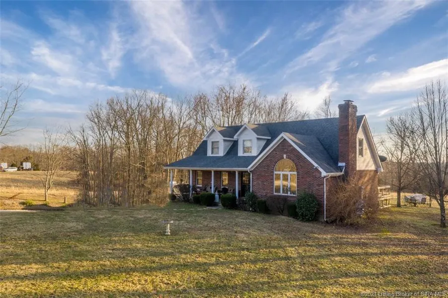 Secluded 65-acre private setting located on the Clark/Wash Co line with an amazing quality BUILT 1.5 story brick home constructed w/ 2x6 walls, extra insulation & wired for energy efficiency. Recently updated large eat-in kitchen w/ solid custom wood cabinetry, granite counters, bar, & large pantry. Solid wood floors, formal dining room, great room with brick hearth and cozy gas log Fireplace, 1st floor bedroom trey ceiling, WIC, & 10x10 master bath with tiled floor-to-ceiling walk in shower, separate main level laundry, and a finished walkout basement with bar and ? bath. This property is home to Tradin' Charlie's car lot; a 30 x 36 shop w/ 14' door, hoist/crane, air service and sep. electrical service; a large horse barn w/ 5 stalls, water & elec; a block garage w/hookups for mobile home (has septic/cistern). Approx. 35 acres tillable. Property/shop easily accessible to tractor trailer...