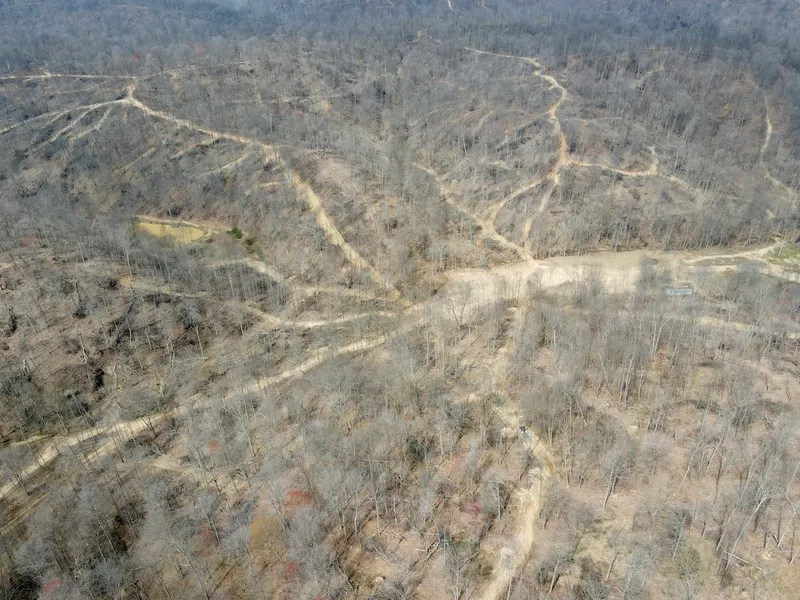 This huge sprawling tract sits in the highly sought-after area of Delaney Bottoms, known for big bucks with an area attraction for camping and outdoor recreation for all. It is a rare find, as acreage of this size and location is always hard to find in Southern Indiana. Starting from the county road, access is made available with two private driveways. The first veers to the left, is gated and paved all the way to the home and shops, while a brand new gravel drive makes a more straight approach and y's into the paved at the top of the ridge. Once at the top, you will come upon the three pole barn/shop buildings. All three are in very good condition and are well cared for. The first is 40x40x16, which has two bays, was insulated this year, lean-to off the left side, power, and has an LP gas line to the back wall. The second one is 30x50x12 with four bays, power and is perfect for making a shop with ample room for work benches and vehicle storage. This building offers a lean-to off the back length of the building. Coming to the last structure, this measures 30x50x12 and has one bay, offering a huge, open, well-lit space. It also has a wall splitting the right side off to a bunkhouse or possible office. Currently, it is set up with a kitchenette, bathroom, bed, and well-sized living space to hang out. It also includes a huge full-length lean-to off the back as well. At the end of the buildings, you will find a cute, cozy, comfortable log cabin with roughly 1200 sq. ft. The home is a two-bedroom, one-bath with an open floor plan. The main floor holds the kitchen, living space, bathroom, bedroom, and laundry, while the upstairs has a large private bedroom and its own porch with stairs leading to the outside. Once outside, the outdoor area has a large oversized pool with a deck to enjoy the summer sun and cool off. Moving on to the main attraction, +/-295 acres of extraordinary land that encompasses attributes that will check all the boxes of the wish list. The main road system was just put in place, with the seller having over five weeks on the dozer grading most of them out and installing water bars. This internal road system has an estimated +/-6 miles of roadway. These roads wind the property valleys, ridgetops and hillsides, which enable you to gain access almost anywhere you wish to travel. This property has it all. The tract has undergone a resectable timber harvest in the past year, with targeted trees of 19-20 inches and above, leaving a nice stand for the future. The new growth, coming on now in the early spring, is guaranteed to be an explosion, providing great food sources and bedding/nesting for the wildlife that call this home. While on the subject, the deer hunting is off the charts, with 160-inch class deer year in and out. It's no surprise with food plots, cover, a pond and creeks. Nine deer were seen on the first trip to the property while just walking around and learning about it. Deer stands and blinds have been strategically placed to catch big bucks crossing the property and have been highly successful. For those who have always wanted a pond, you're in luck. Whether it be catching some fish or maybe taking a ride across the pond on the zip line, for those who are up to the challenge, the fun never stops. True outdoor recreation comes in all forms, and for some, it may be going for long hikes on your own property, enjoying the wildlife and scenery or breaking out the dirtbikes, SxS, or UTV for a day of riding or four-wheeling. No matter how you choose to enjoy the outdoors, this is a property that can truly fulfill all outside recreation.Note: (Besides home and building sites, the rest of the property is in Classified Forest)