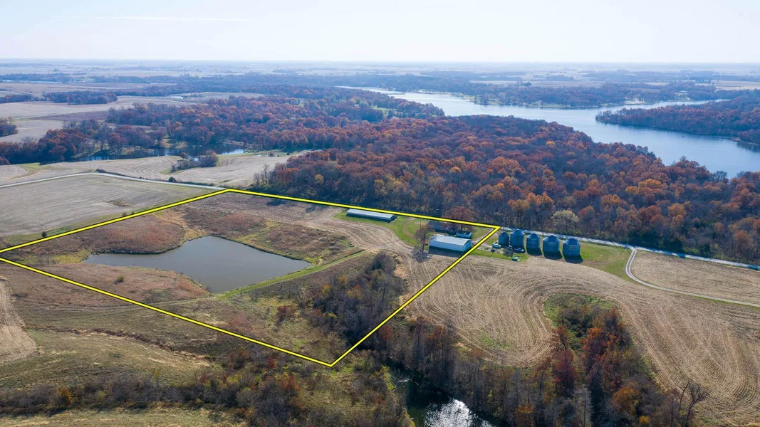 The as-is home has 1,408 sq. ft. of living space with 2 bedrooms and 1 bathroom. Bass, bluegill, and catfish reside in the 2 acre +/- pond, which has a nice mowed lane across the dam for easy access to cast a line. Surrounding the pond are native grasses and sapling hardwoods from the 4 Conservation Reserve Program acres, which compensates the property owner in exchange for promoting soil and water conservation with wildlife habitat.