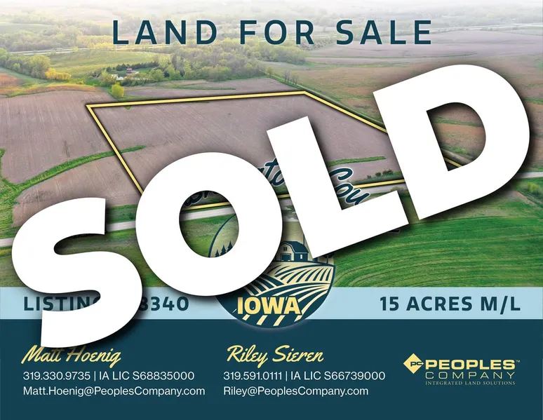Prime 15-Acre Hobby Farm/Building Opportunity in Washington County, IA - Peoples Company is proud to present a rare opportunity to own and invest in your dreams with 15 acres m/l of highly productive farmland nestled in the heart of Washington County, Iowa. Situated just 6.5 miles south of Riverside and a short 20-minute drive to downtown Iowa City, this property offers both the tranquility of the countryside and convenient access to Interstate 218 and urban amenities.
