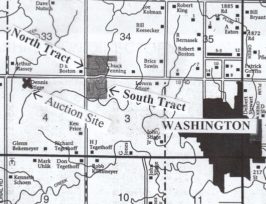 That part of the SW ¼ SW ¼ lying north of the road and Lot 2 in the SE ¼ SW ¼, all in 34-2-3, Farmington Township, Washington County, Kansas, 45 acres, more or less.