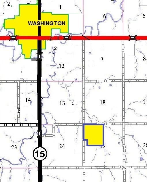 This farm is located one mile east and two miles south of the US 36/K-15 intersection in Washington. This is the northwest corner of the farm, which is the intersection of Rainbow Road and 15th Road. Both roads on the west and on the north are gravel. The farmstead area in the southwest corner, approximately 12 acres, is not being sold.