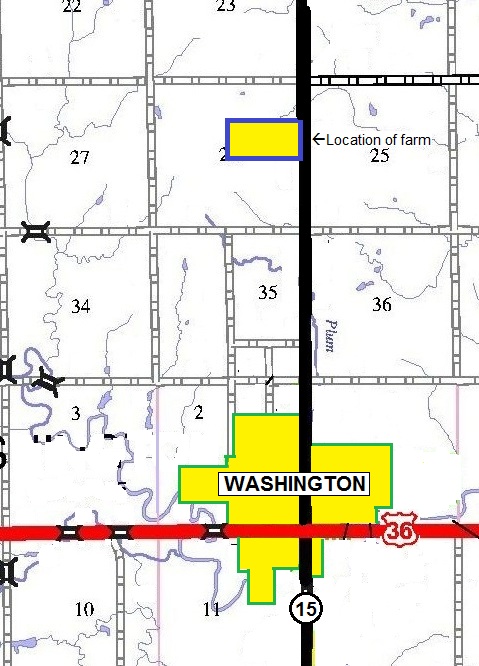The farm is well located 1 miles north of Washington, on the west side of Quivira Road.
