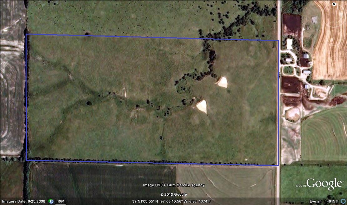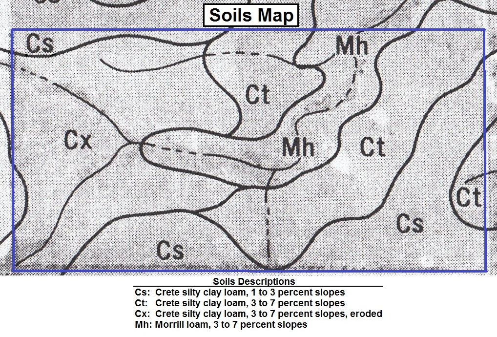This farm, 83 acres, more or less, is all native grass, with fair to good fences, and two ponds. Rural water runs past the east side of the farm. The soils are nearly all gently sloping to moderately sloping Crete soils along with some moderately sloping Morrill loam.
