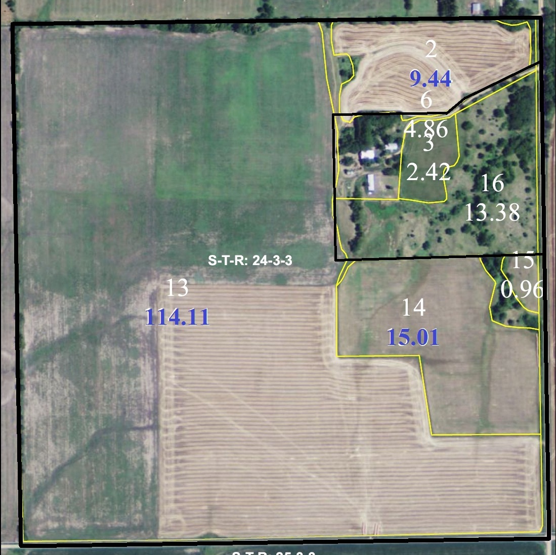 This farm has not been enrolled in the farm program so there are almost no bases. If the two tracts sell separately, a survey will be performed and the Buyers of each tract and the Seller will each pay 1/3 of the cost of the survey.