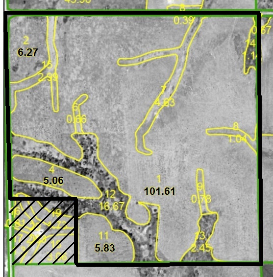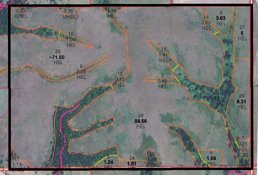 This farm, 240 acres, more or less, consists of approximately 189 acres upland cropland that is currently enrolled in the CRP, with the balance of the farm being timbered draws and wildlife habitat. The CRP rental rate is $52.16 per acre. The CRP contract expires on 09/30/13. Over 100 acres is Crete silty clay loam, gently sloping and moderately sloping soils. The estimated taxes are $1,370.00.