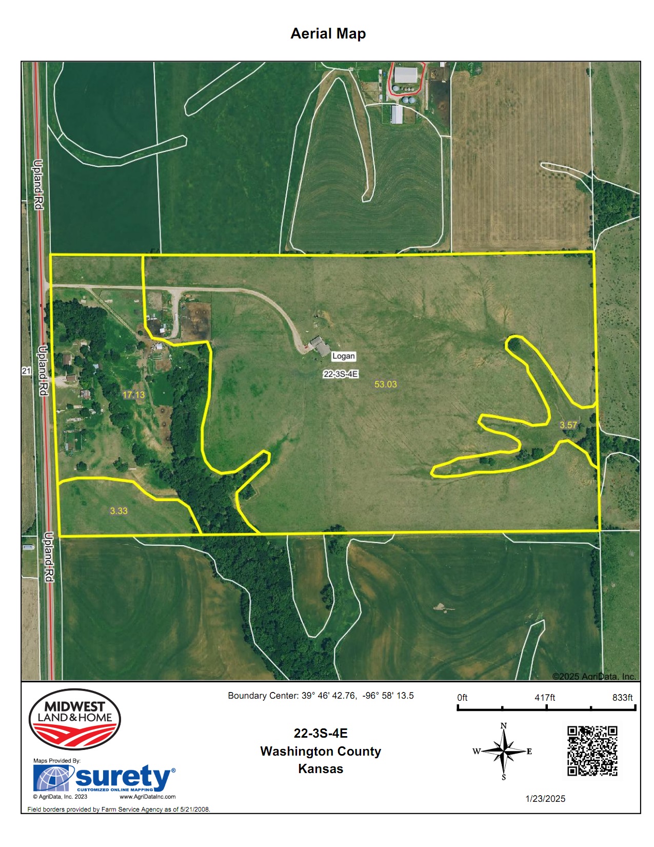 Directions: From Highway 36 and Upland Road head south for 2.25 miles before reaching the property. It is on the east side of the road with the house tucked away about a quarter mile.
