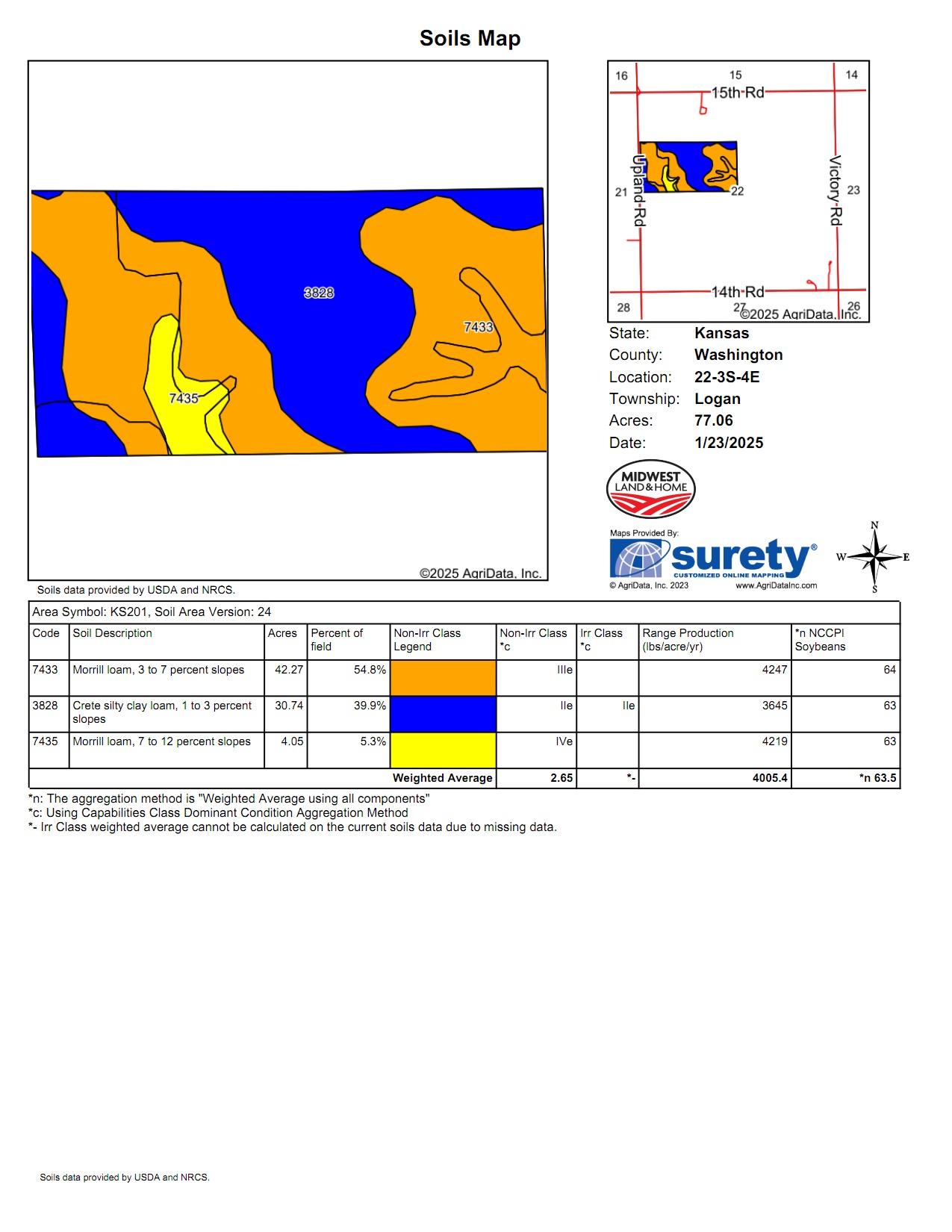Search for detailed parcel information including; Elevation & Vegetation Maps, Ownership Information, Detailed Parcel Information, Crop History Map, Soil Survey Productivity Data, and more.