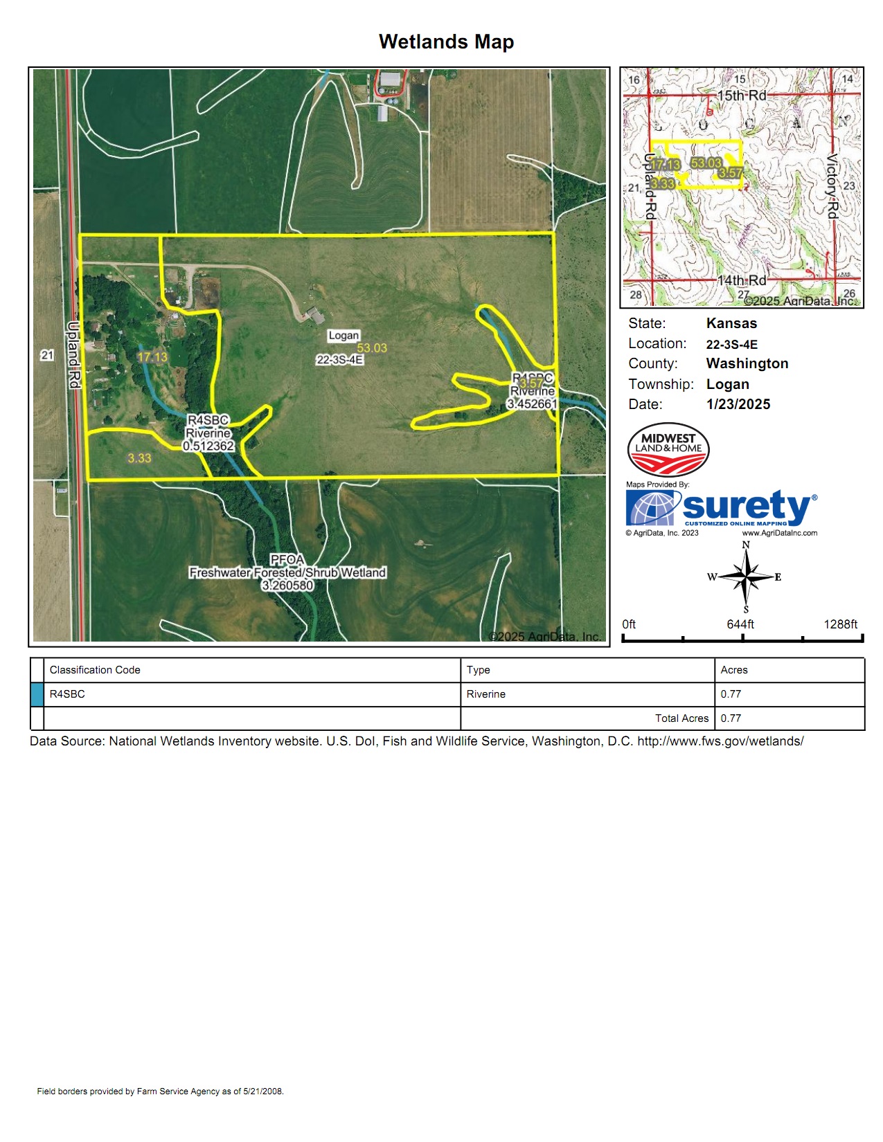A wrap-around porch sets the tone, welcoming you to slow down and soak in the wide-open views of 68.9 acres of dryland or pasture, complemented by 5.6 acres of native grass and natural wetlands. Whether you’re hosting a crowd, growing a hobby farm, grazing livestock, or simply craving room to roam, this property offers a rare blend of functionality and natural beauty. The land’s rolling topography supports excellent drainage and provides diverse habitats, making it ideal for recreation, grazing, and future development.
