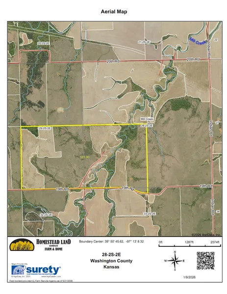 Tract I: SE 1/4 Section 29-T2S-R2E, SW 1/4 Section 28 and 2 1/2 acres, which lies north of the road in Section 33, all located in T2S-R2E Washington County, KS. Containing 322.5 acres more or less.