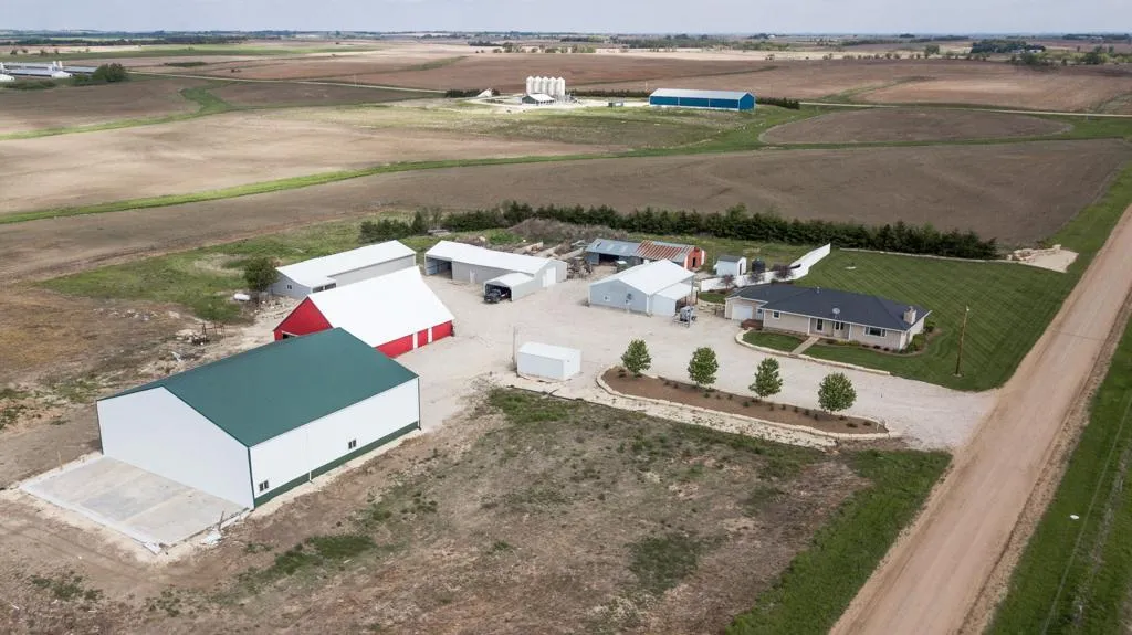 The remaining out-buildings include an older 48'x60' large barn that has been used to raise upland birds. New, heated 72'x76' machine shed with large overhead door. 30'x56' storage shed with two additional car ports. 14'x21' heated cleaning shed with tables, sinks, and freezers. 30'x62' livestock shed. There is also a 45 kW standby backup generator that will power the entire property. The house irrigation system/cistern is on rural water and the entire rest of the property uses well water. The house and new machine shed use natural gas and the other heated building use propane.