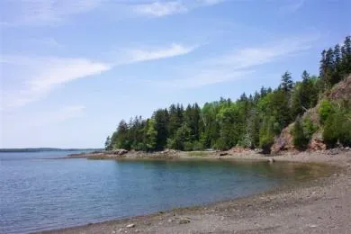 #1121) Lubec: 100 +/- acres of oceanfront privacy with several soil tested home sites along 1500+/- feet of shorefront on South Bay. Includes secluded gravel beach (above) and faces Nature Conservancy owned long Island. Truly a property worthy of serious consideration. $699,000.