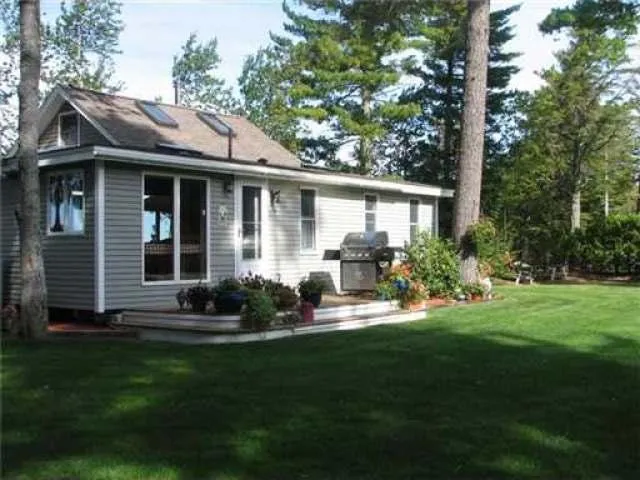 Maine Waterfront Property for Sale. Nestled along the shore of Big Lake quietly sits this meticulous cottage that has been completely renovated for year round living. A 2011 oversized heated garage compliments the landscape offering room for 3-4 cars or recreational toys plus access storage. The parcel has room for a total of 14,000 square feet of buildable space. The property is completely self sustainable thru solar energy. The cottage has new windows, doors, wiring, & skylights while the design of the interior is accented with wainscoasting, hardwood flooring, vaulted ceilings along with comfortable furnishings. The sunsets are simply breathtaking and the landscaping compliments the surrounding area leading to a beach with floating dock. The commute to the legendary White's Island from this mainland property is very accessible either by boat, snowmobile, or plane. This unique island p...