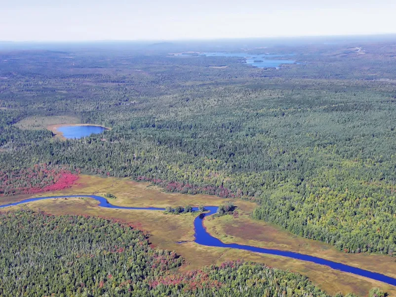 The forest is graced by a substantial number of high quality water resources in the form of lakes, ponds, rivers and streams, each offering a unique aesthetic character, wildlife habitat, and recreational opportunity. The northeast corner of the tract hosts Love Lake with over 10,000 feet of undeveloped shoreline. The eastern portion of the forest encompasses the two secluded and pristine Spectacle Lakes, while the southwest corner of the property features three superlative water bodies: nearly 12,000 feet of undeveloped frontage on Long Lake (including a 2.8-acre island), over 5 miles of frontage on the East Machias River (reknown for its salmon habitat), and over 12,000 feet of frontage on Round Lake.
