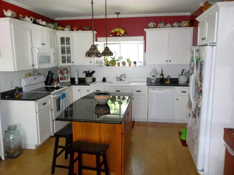 #2081) 1 Peace Street, Calais: This large Federal farmhouse resides in the heart of downtown overlooking memorial park. Featuring living room, family room, den, eat in kitchen, formal dining, 7 bedrooms, 1.5 baths, hardwood floors, wood stoves, attached 2 car garage and all kinds of unique charm!