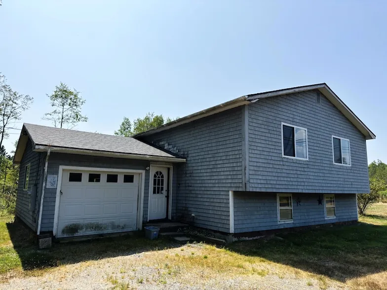 This split-level home offers a comfortable and versatile living space, with approximately 1,100 square feet of finished area above grade and an additional 600 square feet on the lower level. Set on a 1.2-acre lot just ten minutes from Machias, this property provides a balance of convenience and privacy. Inside, you'll find three bedrooms and two bathrooms, including a primary bedroom on the lower level with its own private bath. The daylight basement offers great potential, with some areas awaiting final finishing perfect for a craft room, rec space, or home office. Upstairs, the living spaces are bright and welcoming, with limited water views from two of the bedrooms. The main floor features a spacious living room that runs the full width of the house, providing plenty of room for gathering and relaxation. Two large picture windows allow in an abundance of natural light, creating a warm and inviting atmosphere. The attached single-car garage includes extra space for a workshop or storage, making it a practical feature for those who enjoy hobbies or need extra room for gear. Whether you're looking for a comfortable year-round home or a getaway with easy access to town, this home offers a solid foundation with room to make it your own.