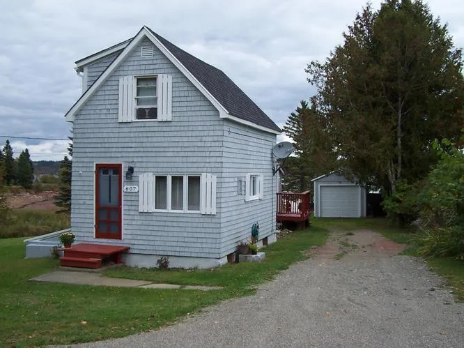 #1278) 607 US RT 1, Robbinston: Cozy 2BDR/1B Waterfront Home w/ 1 Car Garage, Easy Access to the Red Gravel Beach w/ Views of New Brunswick, Canada and Very Close to the Public Boat Landing. Home has had Many Updates! Make This Your Beautiful Summer Retreat or Retirement Home. $149,900