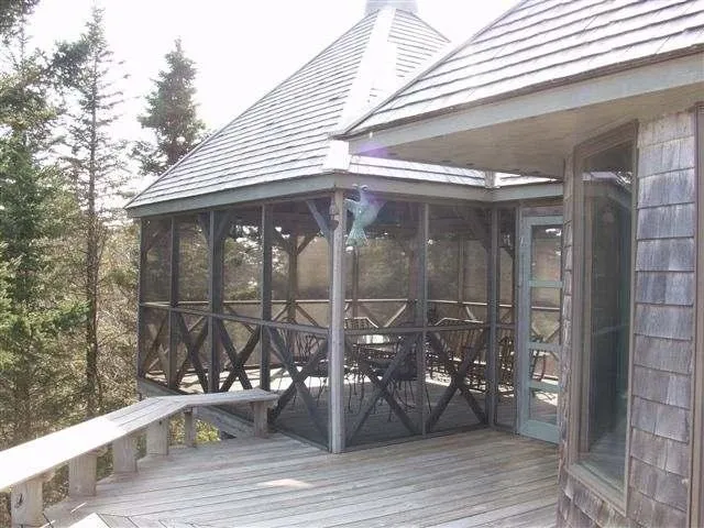 Maine Waterfront for sale thru Cabela's Trophy Properties- Majestically nestled on a high bluff overlooking the Atlantic this quality built contemporary offers commanding views yet privately suited in its environment. Located on one of the highest points at Cow Point in Roque Bluffs, the tear shaped deck gives one the impression of being far out to sea. One can see for miles, literally being over the tree tops in this cliffside estate. Both homes, including the guest home, were created with attention to detail making sure the windows were strategically placed for the utmost views of the ocean and natural surroundings. The screened gazebo accessed thru the main home is a great place to enjoy your morning, afternoon, or evening meals or a quiet cocktail at the end of the day. Two levels of decks on the main home offer a place to restore one's energy and to reconnect with nature. There is a...