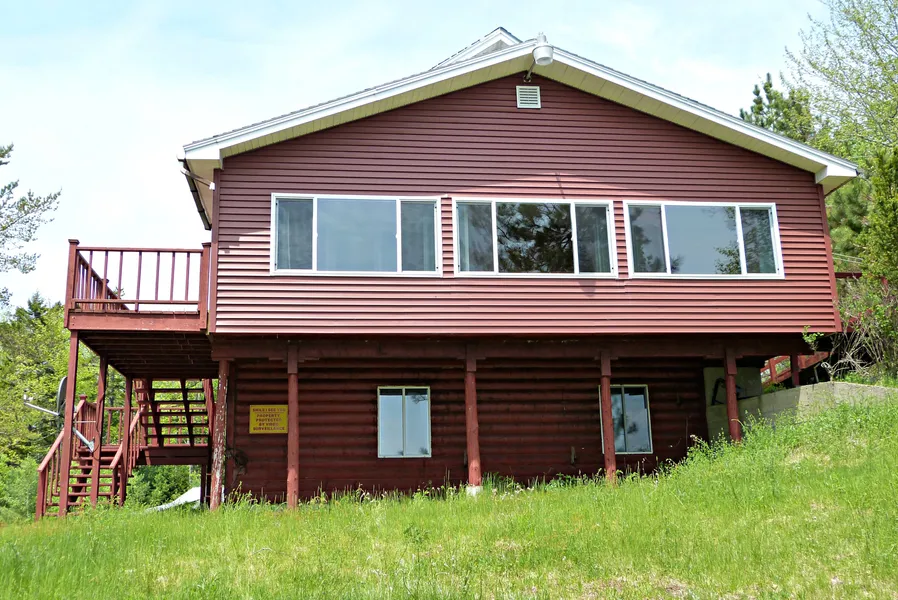 Overlooking Love Lake, this 2,480 square foot waterfront home is located at 16 Beech Lane in Crawford, Maine. The home features 1.5 acres of trees and greenery that leads directly to the water’s edge (208 feet of frontage). The enclosed porch provides stunning panoramic views of the lake and Maine wilderness. This 3 bed 2 bath log home features beautiful woodwork inside and out, vaulted ceilings, 1 car attached garage with direct entry to living, and a ramp to fully access the first floor. There is a first floor master bedroom directly off the large great room with an entry to a full bath/laundry room. The basement features plenty of storage space, garage, one bedroom, and a 3/4 bath. In addition to the main house, this property includes a separate 1 bedroom cottage as well as a large shed for storage. This stunning year round home is a great place to experience the Maine outdoors. Love Lake is home to more than 19 different types of fish including salmon, brook trout, and smallmouth bass. Perfect for fishing, boating, swimming, nature watching, and more!