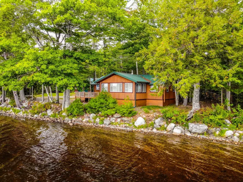Nestled along the shore of Big Lake in the Grand Lake Stream Region this year round cottage is calling you gently to a place that whispers serenity and nature. A place to gather with family and friends, a haven from the outside world. The cottage offers two bedrooms, one bath, laundry room, plus an open concept design for the kitchen, living room, and dining area overlooking the lake. The kitchen has granite counter tops from the renovations that took place in 2013. A stone hearth with a heart warming wood stove for those chilly fall and winter days. Heat pumps take care of the heating in the cooler months. A spacious garage with overhang is insulated on the first floor with a second level storage area. Metal roofing on both structures provide care free maintenance. There are two other small storage sheds. A private lot with 300’ of lake frontage. Big Lake is over ten thousand acres wit...