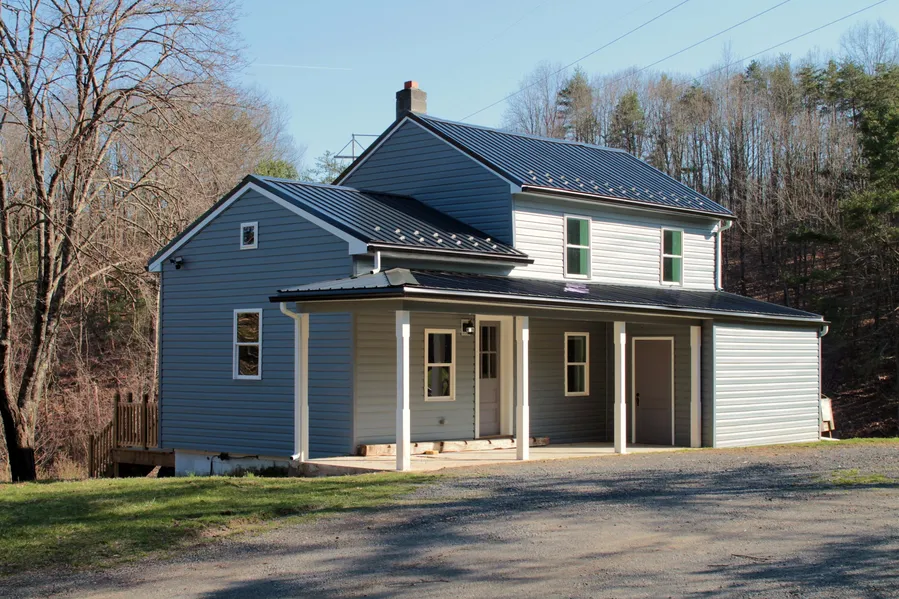 This late 1800s era farm house has just been completely remodeled. Nestled in one of the many valleys this 35+ acre parcel offers, you're sure to find the privacy you've been looking for. The acreage includes open field space towards the front, perfect for animals. Most of the acreage is wooded and there are numerous trails for ATVs or hiking cut through the property. Multiple streams, valleys and mature growth trees make this location perfect for wildlife. The home includes a covered front porch and rear deck. Inside you're greeted by wood plank walls and vinyl plank floors through-out. The kitchen features cathedral ceilings, recessed lighting, hickory cabinets, and modern black appliances. There is plenty of space for a 4-person table in the kitchen. The living room offers lots of space for sectional seating and has been restored to showcase one of the homes original log walls. The main floor offers a large storage closet, separate laundry room and the homes full bath. The bath offers a tile tub/shower combo and new vanity. The second floor features a large open room with 2 additional bedrooms. Perfect for a weekend get-away or full time residence the layout of the 2nd floor offers plenty of options. The attic is floored for storage and has blown insulation for energy efficiency. The home has been updated with spray foam insulation in the basement, well water filtration system, metal roofing, vinyl double pane windows, and vinyl siding. This home is ready for you to move in and begin enjoying the privacy and acreage offered. The owners would also consider renting this home for $1095 per month.