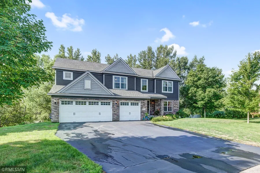 Welcome to Whispering Woods! This beautiful home is located on a cul-de-sac with 3372 finished square feet above ground, and much potential with the large unfinished walkout basement. Featuring a gourmet kitchen with center island, granite counters, and hardwood floors. Gas fireplace, 10 ft ceilings, & office/den, and laundry all of the main floor. Welcoming foyer, large formal dining space, & open floor plan. Spacious 3 car garage that enters to Mud Room. 4 bedrooms on one level, huge owners suite with 2 vanities, spacious shower and two large walk-in closets. This home is a must see!