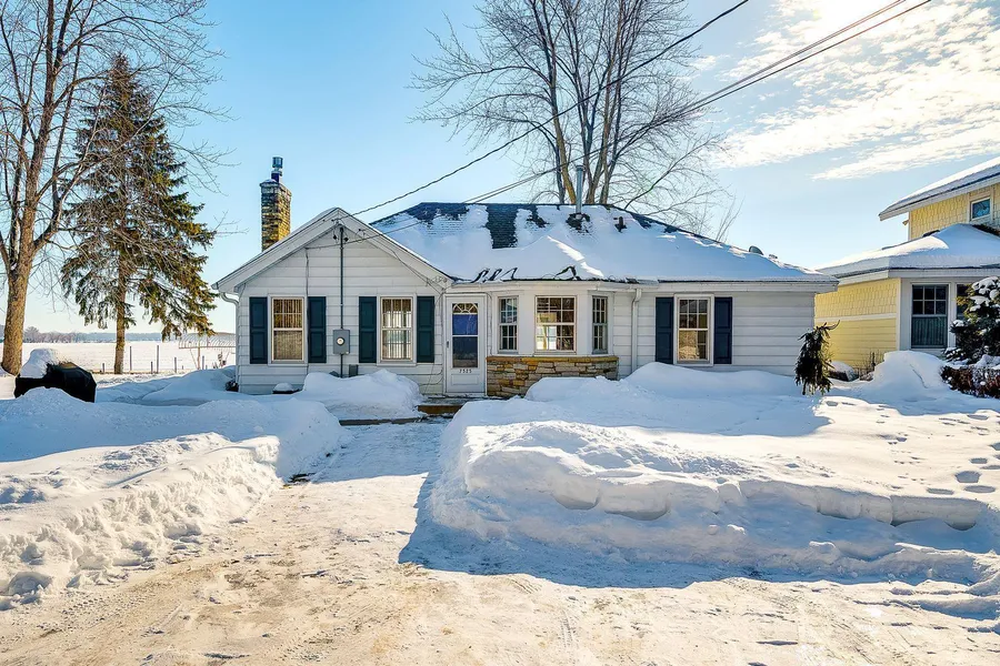Incredibly charming cottage/4 season cabin on demand Forest Lake lot! Beautiful SE views of the 2nd lake from picture perfect lot with gradual slope to 75 ft of sandy shoreline. Situated nicely on quiet peninsula with low traffic. Many cosmetic updates inside, large fam room walks out to patio/lake & full of windows for lake views, French doors to private office, formal dining plus eat-in kit, newer cabinets in kit. Huge main BR could be used as formal LR with stone fireplace, HW floors, vaulted ceilings and view of lake. 2 smaller BR's separated by updated bath. New well in 2022 moved to allow for future garage (see plans). New street & city sewer 2022. Boat house by lake grandfathered in. Boat to downtown Forest Lake, the Old Log Cabin Restaurant or coming soon...Pizza Pub on the Lake! Boat landing about 3 minutes down the road. Enjoy this retreat for years to come or re-build your dre...
