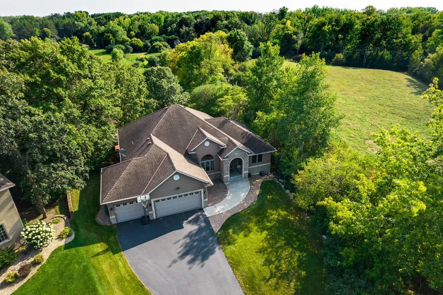 Wonderful updated one level walkout on nearly on large lot backing to wetlands. Tranquil private cul de sac in highly desirable neighborhood. Stunning nature views from your screened porch, patios and outdoor living areas. Abundance of wildlife and mature trees. Open, bright and spacious main level is ideal for entertaining. Dream kitchen with gigantic island, granite countertops, stainless steel appliances, eat in kitchen and formal dining room. Gleaming newer hardwood floors throughout. Spacious main floor owners suite with 10 foot vaulted ceilings and luxurious spa like bathroom with double sinks and jetted tub. Huge closet with custom built-ins and organizers. Five total bedrooms plus an office/flex room. 3 sided fireplace, newer deck, newer flooring, newer paver patio, etc. Super fun 'tiki room' with water feature capability on walkout lower level. Large finished 3 car garage with t...