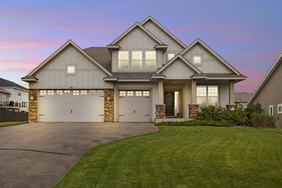 Very well appointed sophisticated spacious 17' built two-story lookout with large deck, finished lower level, ready to move-in! Main floor offers open layout with gourmet white enameled kitchen, formal and informal dining, family room with gas fireplace, office, walk-in pantry, laundry room with sink, mud room and walk out to large deck for ultimate indoor/outdoor entertaining. Upper level features 4 generous bedrooms and a large loft, two ensuites and jack and Jill for all bedrooms access to a bath. The finished lower level provides a great private guest suite setup, exercise room, spectacular entertainment room and load of storage. This house offers generous walk-ins, built-ins and storage throughout! Dynamite lake Elmo location with immediate access to Woodbury shopping and dining scene, stone through to parks and Lake Elmo offerings, and convenient hwyway access for quick rides to th...