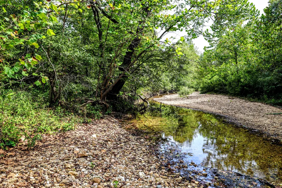 Notes from photographer: Topographically, the eastern half of the property is a hill. The peak is at the northeastern corner and it slopes southwest to the creek that borders the western edge of the property with the relatively flattest part being the half of the property on the west. It was heavily wooded with some clearings as well as along the creek it was very open and quite nice. If you have a keen eye, you can spot fish in one of the pictures I took of the creek.