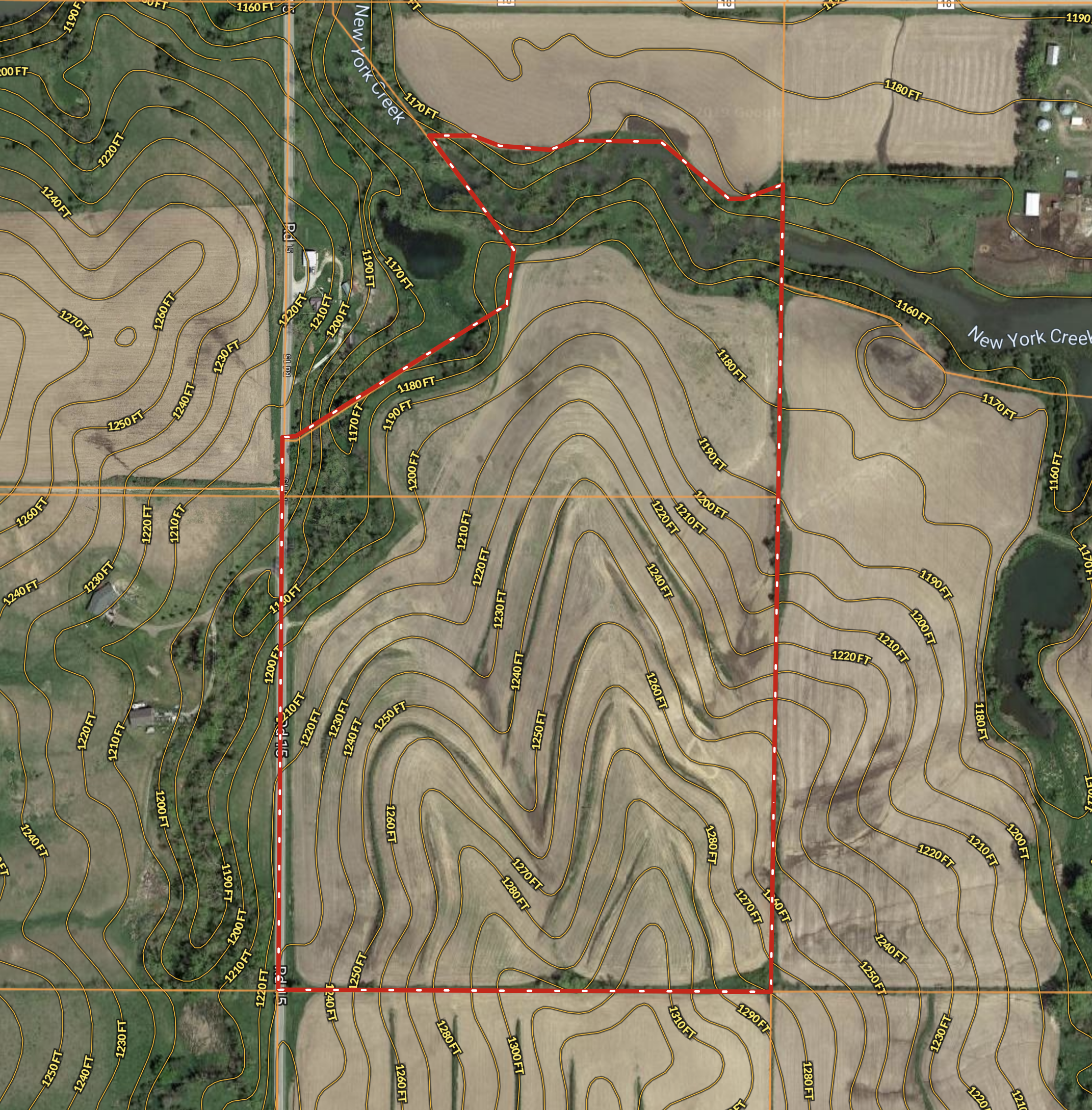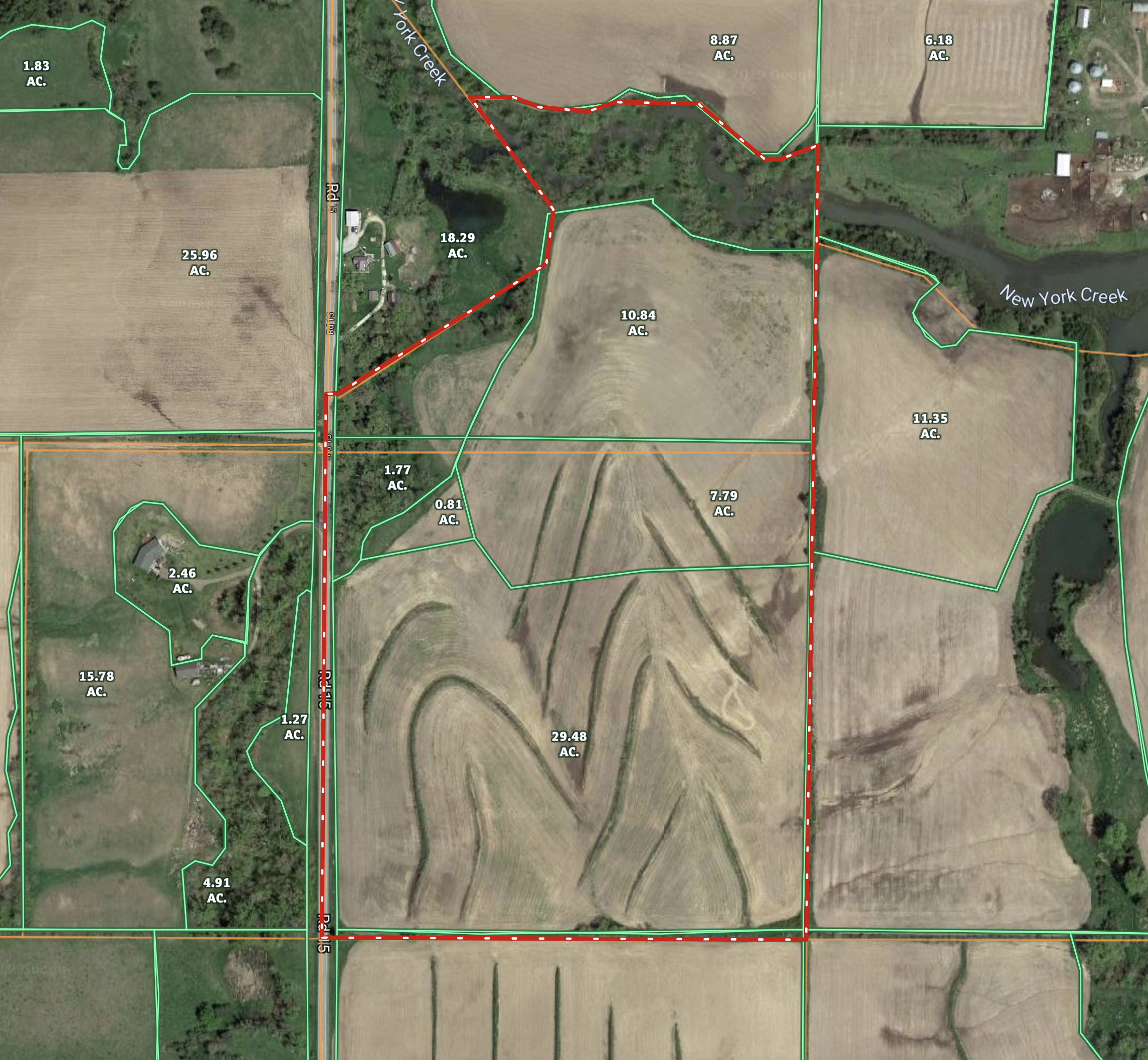 A great opportunity to own an income producing parcel of land located north of the metro area that provides spectacular views of the countryside and borders a running creek. This diverse piece of land has many buildable areas to place your dream home to view the glorious morning sunrises and breathtaking sunsets. Panoramic is exactly what you can get! Nestled in the northern boundary of the property are both sides of the New York Creek that provide a valuable water source for wild game traveling through the area. Yes, you can fish as well. Several whitetail deer tracks are visible around the creek. The current owner has enjoyed many years of deer and turkey hunting with family and friends on the creek bottom or higher in the hills that provide more line of sight. There are approximately 50 acres of tillable farmland that will be a combination of row crop and hay this year. This i...