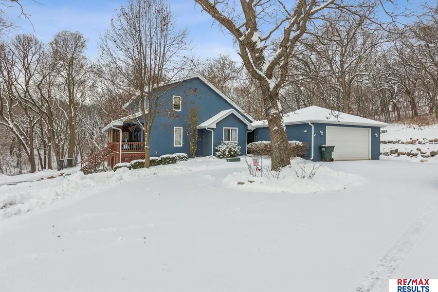 Julie Pohlad, M: 402-669-5018, , - Your private country haven awaits! Perched on a picturesque hill & surrounded by mature trees, this timeless 10–acre retreat offers unmatched serenity & space. The charming enclosed front porch invites you to relax & take in the stunning views. PREINSPECTED. Thoughtfully renovated into an open-concept design, this 1.5-story provides every space you need. Upon entering, you’re greeted by a stunning floor-to-ceiling brick wood-burning fireplace anchoring the room, complete w/cozy TV nook. The adjoining chef’s kitchen features newer appliances, granite counters, tile backsplash & center island perfect for meal prep & dining. A spacious dining area off the kitchen overlooks the peaceful outdoors. The new back patio w/firepit is ideal for evenings unwinding in the hot tub. The lower level is built for entertaining, complete w/wet bar. This property also features 2 dual car garages—1 heated, a paved driveway