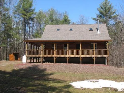 Secluded Northeastern log cabin, nestled in the woods, located on a quiet dead-end lane. This retreat features cathedral ceilings, a loft, skylights, a wrap-around covered porch and a walk-out basement with one car garage. Extras include supplemental propane lights, generator hook-up, two woodstoves and a storage shed. Enjoy exploring the 18.73 acres of land via the well tended trails that lead throughout the property. Plentiful wilflife including whitetail deer and wild turkeys for the hunter's delight. Looking for solitude and the best of what nature offers? Look no farther as this is the perfect place to unwind and get away from it all!