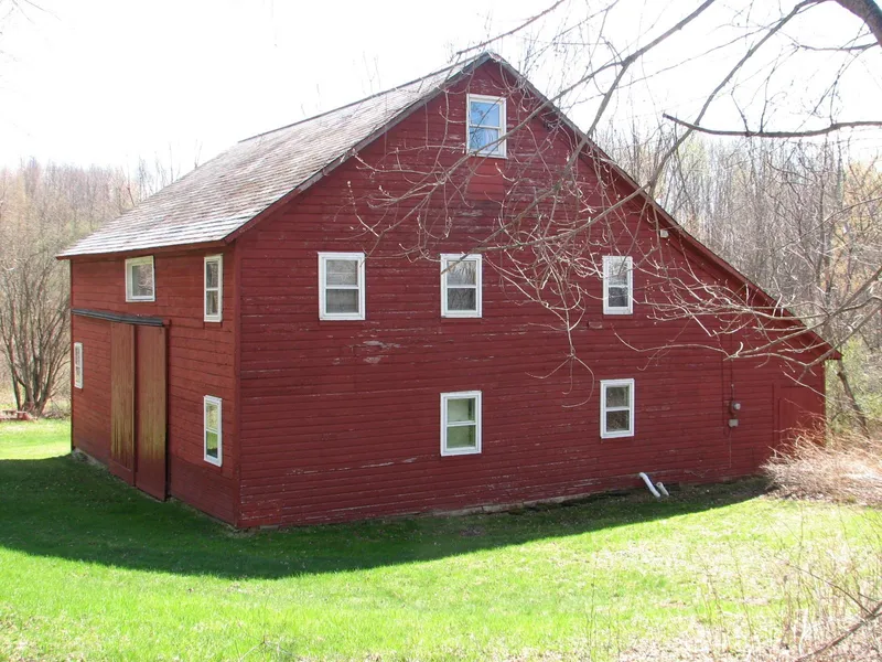 Very secluded, rustic barn conversion cottage tucked amidst 11.82 acres of open & wooded land, in the rolling hills of Hebron. The soothing sound of water cascading over a small waterfall is enjoyed from the side deck. This seasonally used cottage offers fun space and can be easily expanded. A wonderful retreat for nature enthusiasts.